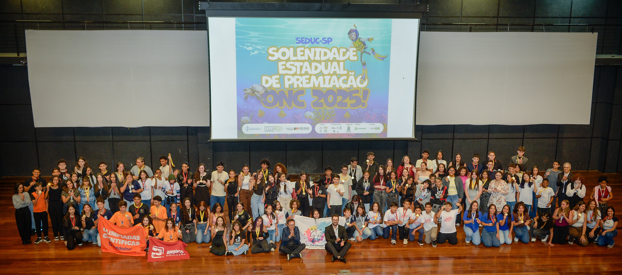 Os 366 alunos da rede estadual com melhor desempenho na Olimpíada Nacional de Ciências (ONC) 2025 foram premiados com medalhas de ouro, prata e bronze, além de certificados em cerimônia realizada no Centro de Difusão Internacional da Universidade de São Paulo (CDI-USP) nesta semana. Do ABC, são 16 alunos medalhistas. A competição deste ano teve como tema central os oceanos e os participantes foram estimulados a explorar a biodiversidade marinha, o ciclo da água e o papel dos mares no equilíbrio climático e na sustentabilidade do planeta.