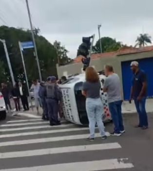 VIATURA DA PM CAPOTA NO IPIRANGA DURANTE PERSEGUIÇÃO A ASSALTANTES DE CARGA
