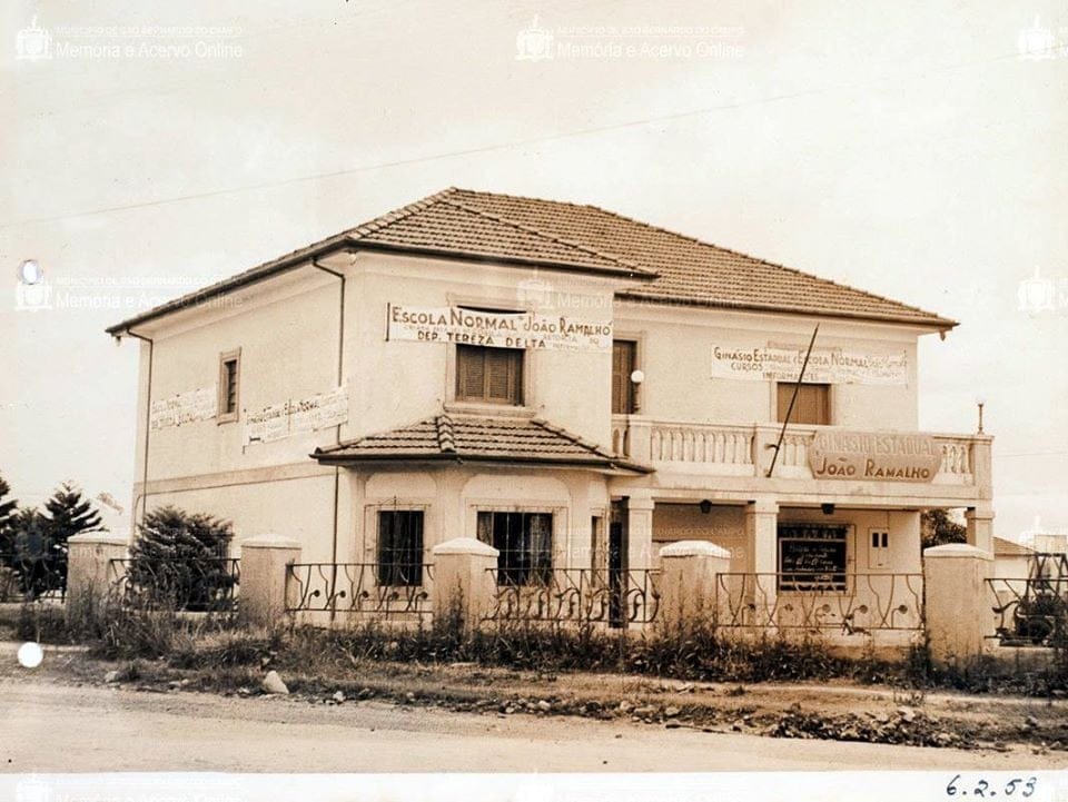 A Lei 613, de 2 de janeiro de 1950, permitiu a criação de ginásios estaduais em escolas de cidades do interior. Foi assim que foi criado o Ginásio Estadual João Ramalho, em São Bernardo do Campo. Mas só em março de 1952 ela foi instalada. Ficava na Praça Samuel Sabatini, antiga casa de Tereza Delta, que cedeu o imóvel para a instalação da escola. O local está muito diferente de hoje, pelo que se vê nas fotos. Mas, com o tempo e a demanda, o prédio ficou pequeno e um maior começou a ser erguido ao lado. Falaremos sobre essa edificação numa próxima publicação.