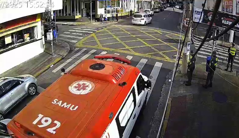 A partir daí, a resposta integrada entrou em ação. A equipe médica reguladora do SAMU (Serviço de Ambulatório Médico de Urgência) acompanhou a ocorrência em tempo real pelas câmeras do Terminal Rodoviário e, simultaneamente, pelas informações enviadas pelas forças de segurança. Foram acionadas as motolâncias e uma ambulância de suporte básico, que chegaram rapidamente ao local. Em seguida, uma Unidade de Suporte Avançado, liberada de outro atendimento, completou o atendimento.