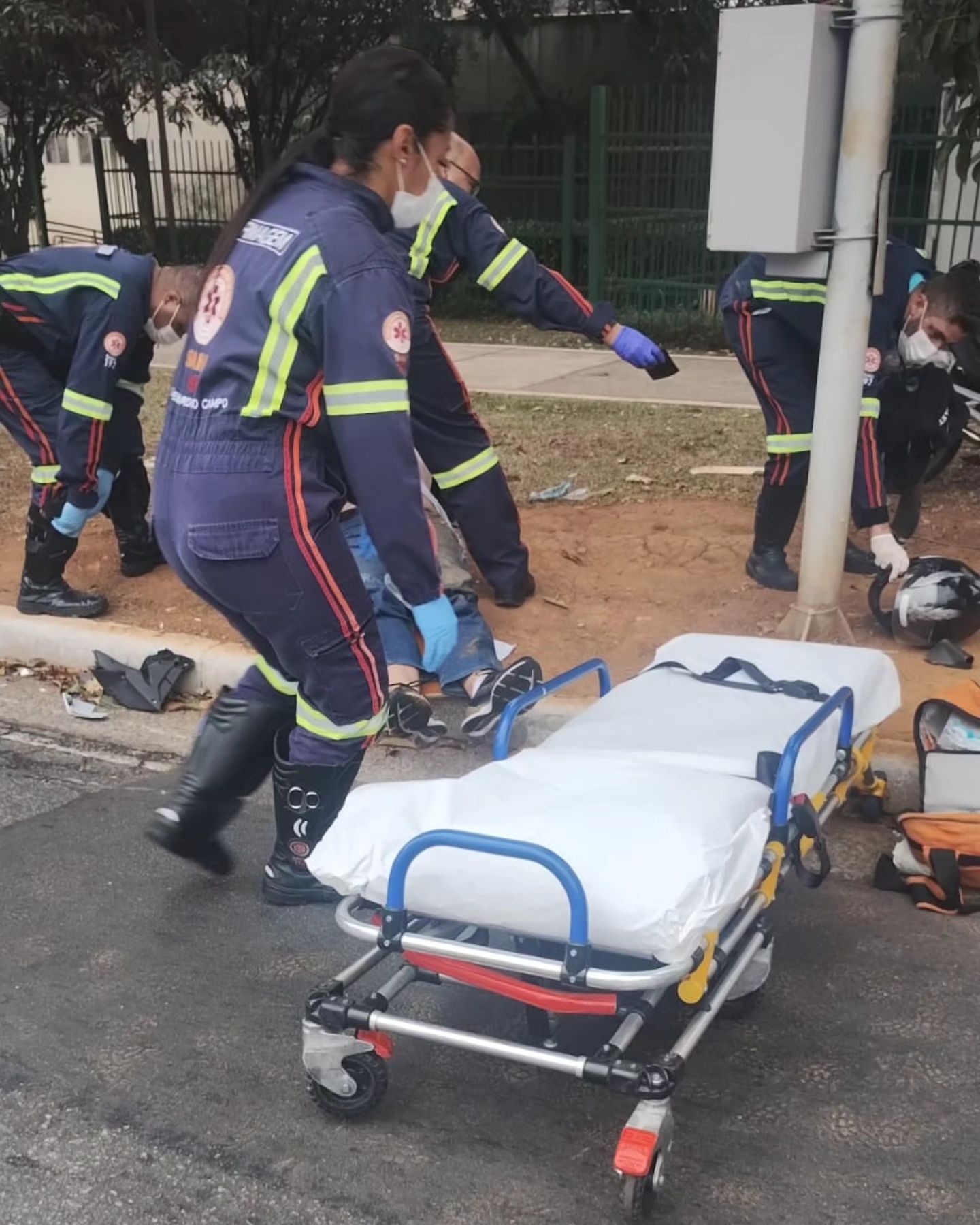 De acordo com o Boletim de Ocorrência, GCMs (Guardas Civis Municipais) foram acionados para atender a ocorrência e encontraram a vítima ferida. O Samu (Serviço de Atendimento Móvel de Urgência) foi chamado e o motociclista levado ao hospital.