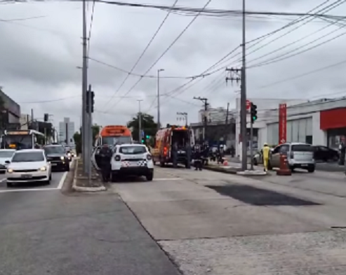 Um acidente entre um carro e uma motocicleta foi registrado na manhã desta sexta-feira (6) na Avenida Lucas Nogueira Garcez, altura do número 666, no sentido Via Anchieta, em São Bernardo do Campo.
