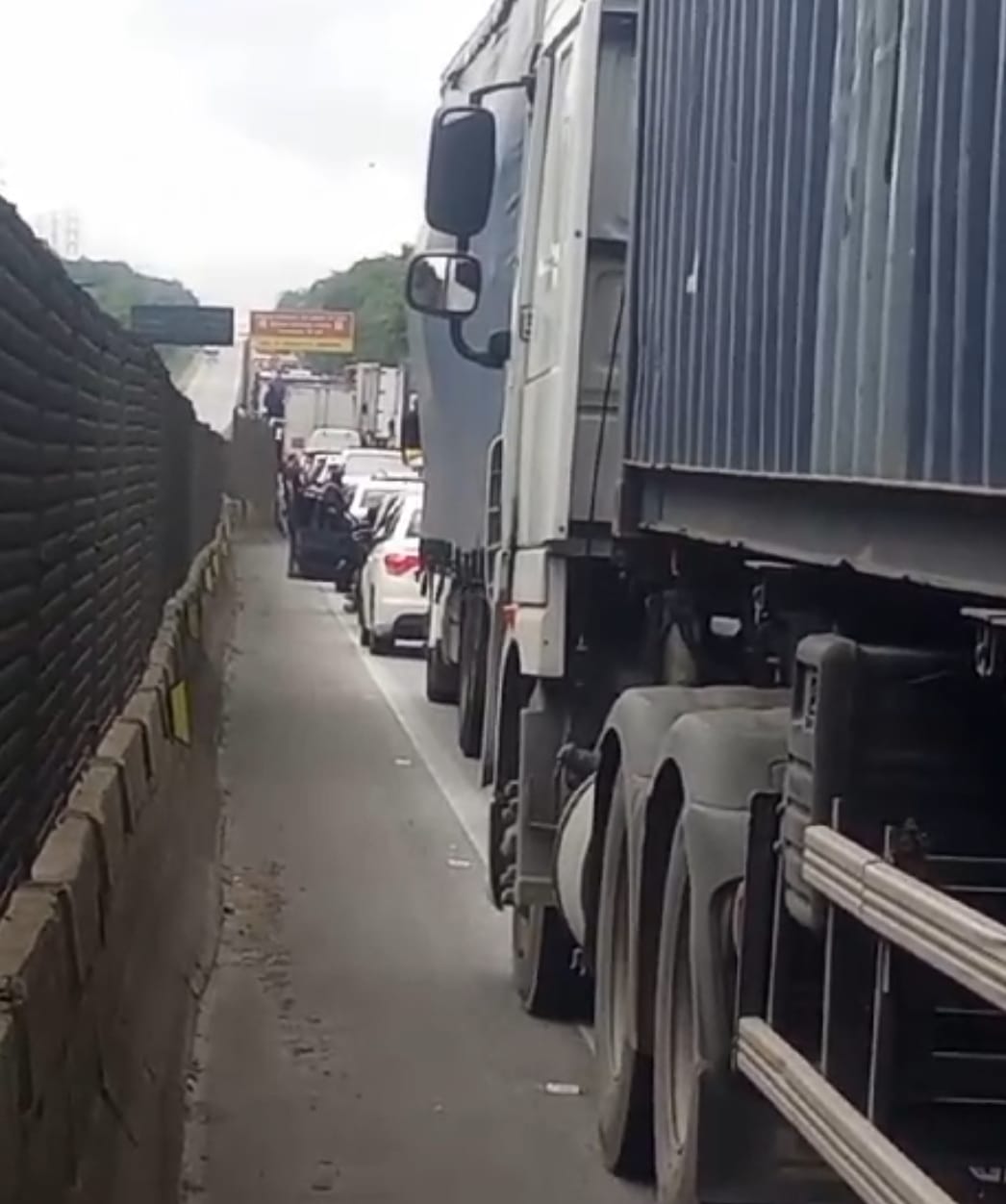 ACIDENTE ENTRE DOIS CAMINHÕES E UMA CARRETA BLOQUEIA TRÂNSITO NA ANCHIETA