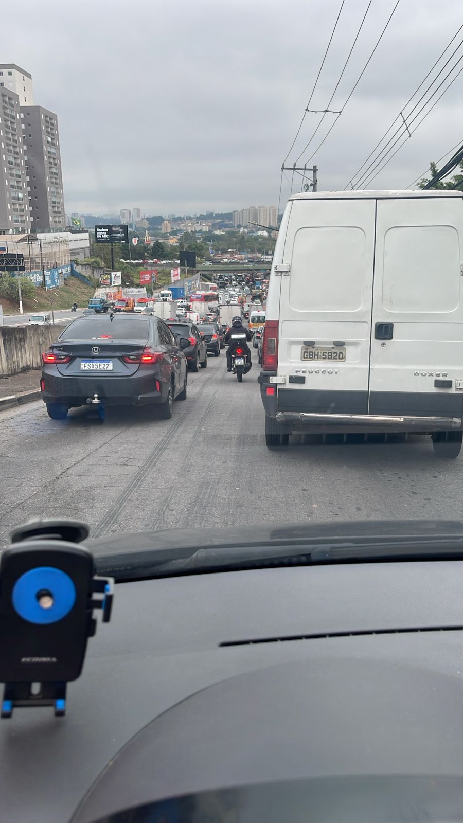 Um acidente entre um carro e uma moto causou grande congestionamento na tarde desta terça-feira (17/09), na avenida Lions, em São Bernardo, sentido Santo André.