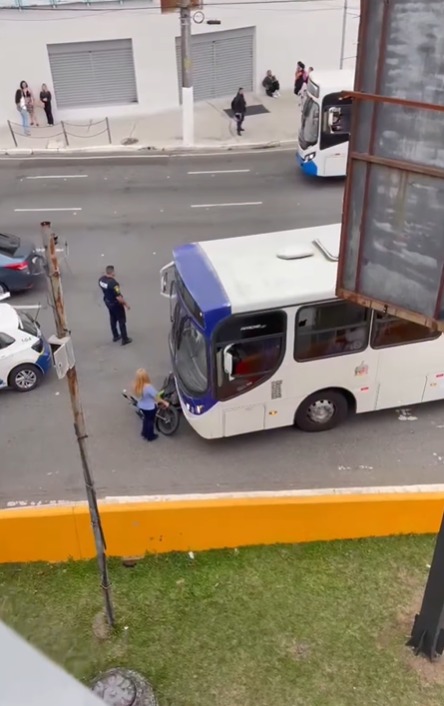 Um acidente envolvendo um ônibus e uma motocicleta ocorreu na tarde desta quinta-feira (16), na região central de São Bernardo do Campo. A batida foi na bifurcação, no começo da Rua Jurubatuba, perto do banco Itaú e em frente à passarela.