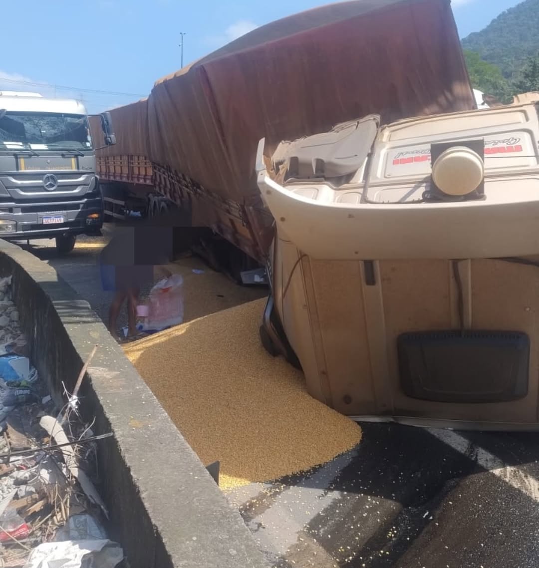 ACIDENTE ENTRE TRÊS CARRETAS CAUSA LENTIDÃO NA ANCHIETA SENTIDO LITORAL