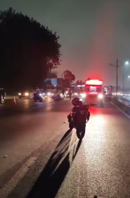 A ocorrência foi registrada nas proximidades do posto da Polícia Rodoviária, base de São Paulo do 1º Batalhão de Polícia Rodoviária (1º BPRv), logo após o Cenforpe. As duas vítimas estavam na moto e sofreram ferimentos leves. Elas foram socorridas no local por uma ambulância da Ecovias.
