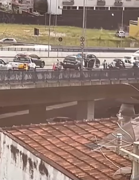 Um acidente entre um carro e uma moto de aplicativo foi registrado na manhã desta sexta-feira (23) no Viaduto Tereza Delta, em São Bernardo do Campo, no sentido Faria Lima.