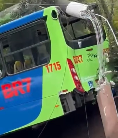 Um ônibus da linha 19 Industrial/Los Angeles se envolveu em um acidente na tarde deste domingo (16) na Estrada Galvão Bueno, em frente ao Outlet Premium, em São Bernardo do Campo. O coletivo ficou desgovernado, colidiu e arrancou um poste, parando sobre um barranco.