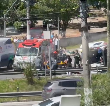 Um acidente envolvendo uma ambulância e um carro de passeio foi registrado na tarde deste sábado (14), por volta das 13h, na Avenida Robert Kennedy, altura do número 2113, no bairro Planalto, em São Bernardo do Campo, em frente ao Mesc. Segundo informações iniciais, um carro preto atingiu a ambulância no momento em que o veículo de atendimento atravessava o cruzamento. Com o impacto da colisão, a ambulância acabou capotando na via.