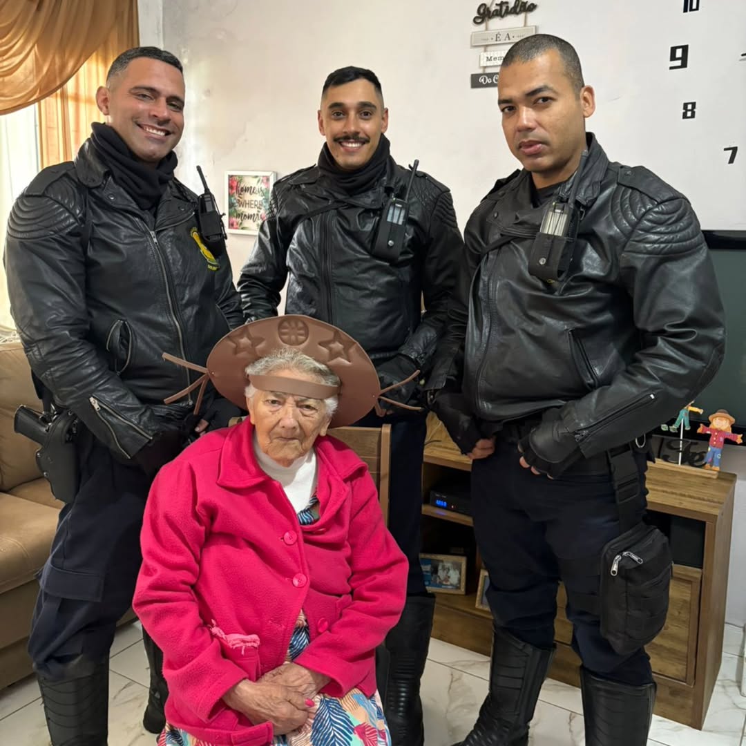 Neste sábado (9), durante rondas pela Estrada dos Alvarengas, em São Bernardo do Campo, a Guarda Civil Municipal foi abordada por Nice Viana. Ela contou que sua mãe, Dalva Viana, completava 91 anos e sempre sonhou em conhecer um guarda municipal para registrar uma foto como lembrança.