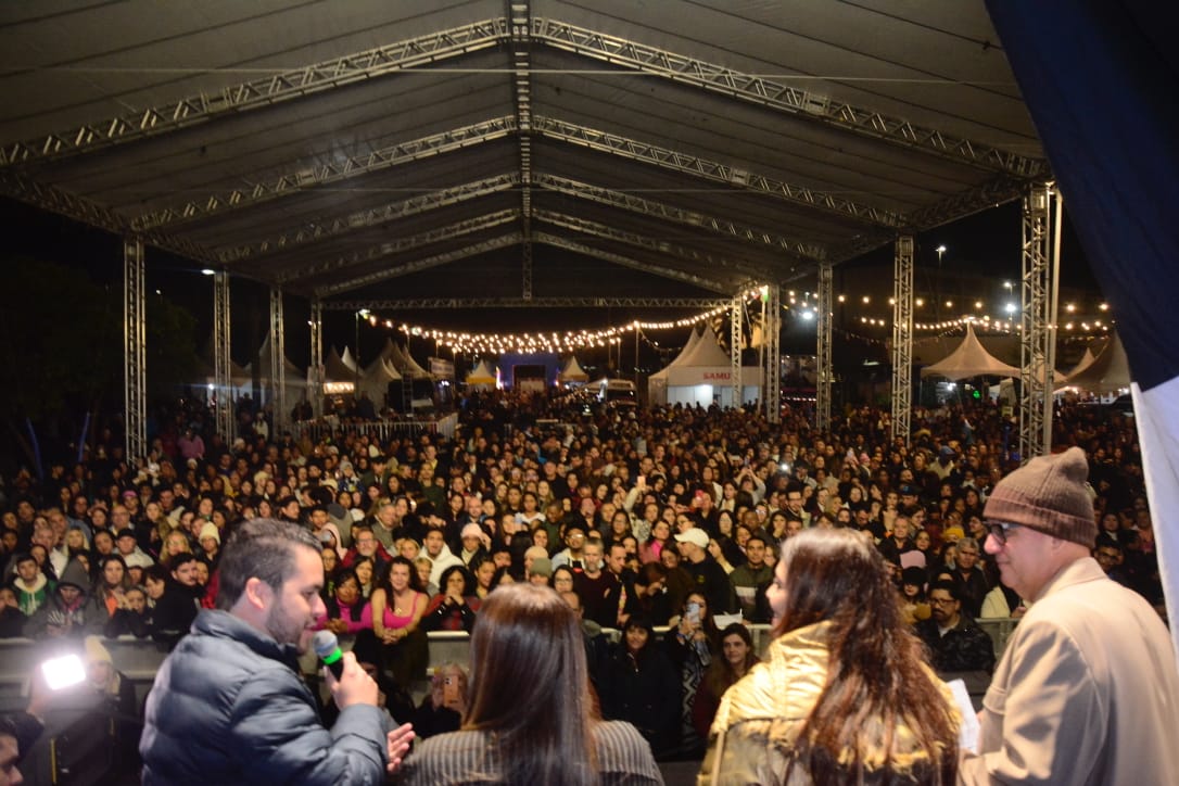 Começou nesta sexta-feira (13) o Arraial Solidário 2025. Milhares de pessoas venceram o frio e estiveram no estacionamento do Paço Municipal de Santo André para acompanhar o primeiro dos três dias de festa, com muita música, comidas típicas e solidariedade. Além de aproveitarem o melhor da culinária e das bebidas oferecidas nas barracas, o público ainda foi brindado com um empolgante show da dupla Thaeme & Thiago encerrando a noite inicial. A festa tem sequência neste sábado (14), das 12h às 22h.