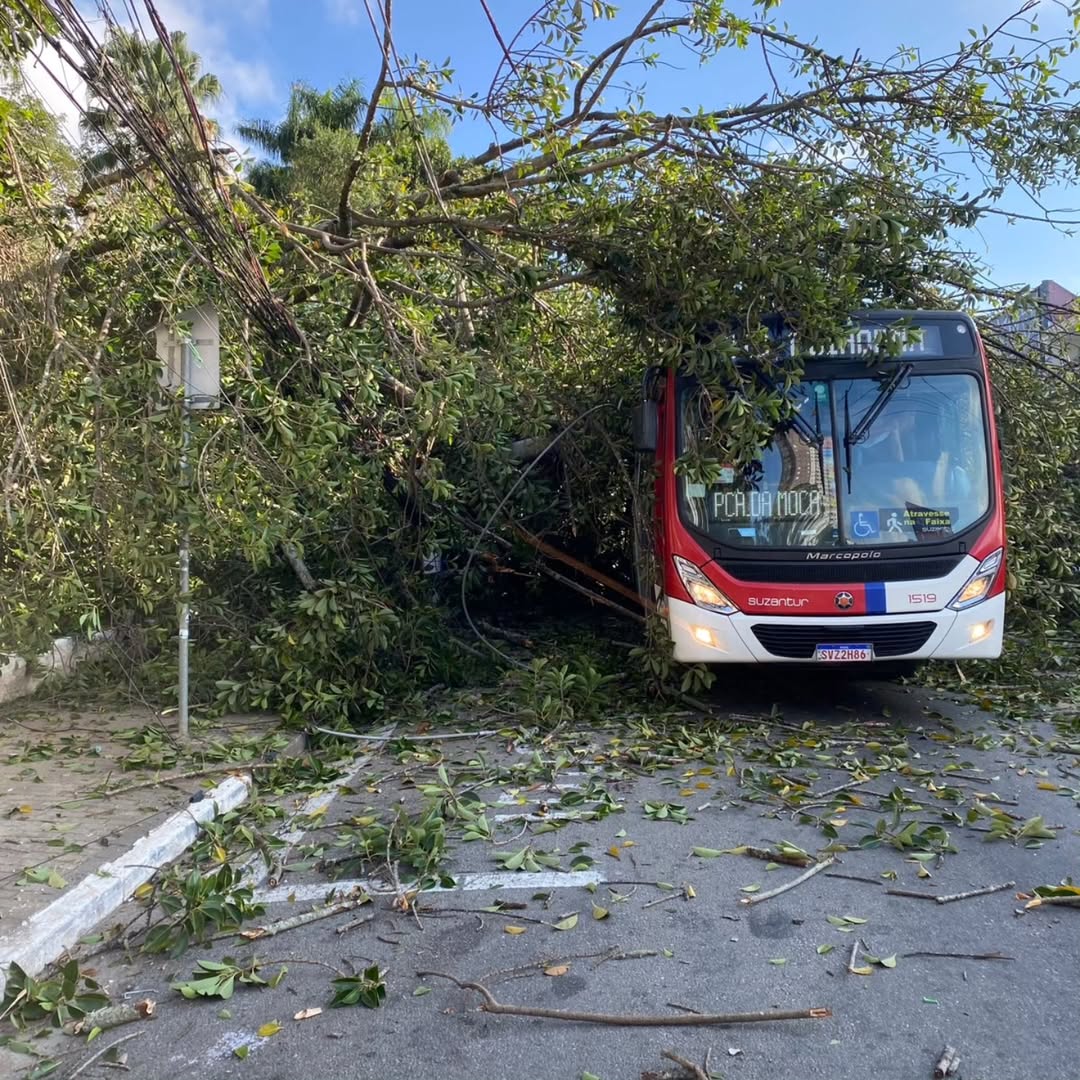 Uma árvore caiu na tarde desta terça-feira (13) na Avenida Alda, em Diadema, em frente à Secretaria de Cultura. Com a queda, a árvore derrubou um poste de energia elétrica, que atingiu um ônibus que passava pelo local.