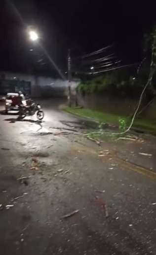Na noite desta quinta-feira (15), uma árvore caiu em frente ao número 9951 da Estrada Galvão Bueno, na entrada do Parque Los Angeles, em São Bernardo. Com a queda, um fio de eletricidade foi rompido. Um vídeo foi registrado no local.