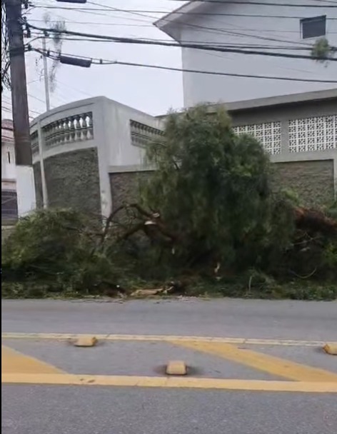 Uma árvore de grande porte caiu na manhã desta quinta-feira (25) na Avenida Padre Anchieta, altura do número 500, no bairro Jordanópolis, em São Bernardo do Campo.