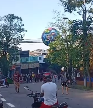 Vídeos mostram a movimentação de curiosos no local. A prática de soltar balões é crime ambiental, pois pode causar incêndios e acidentes.