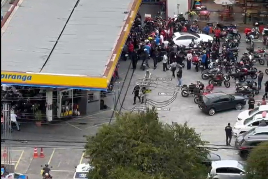BLITZ DISTRIBUI R$ 12 MIL EM GASOLINA A MOTOCICLISTAS E LOTA POSTO NA RUA JURUBATUBA