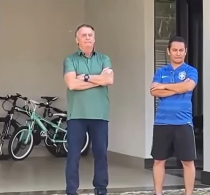 BOLSONARO APARECE EM FRENTE À SUA RESIDÊNCIA EM BRASÍLIA EM DIA DE JULGAMENTO NO STF