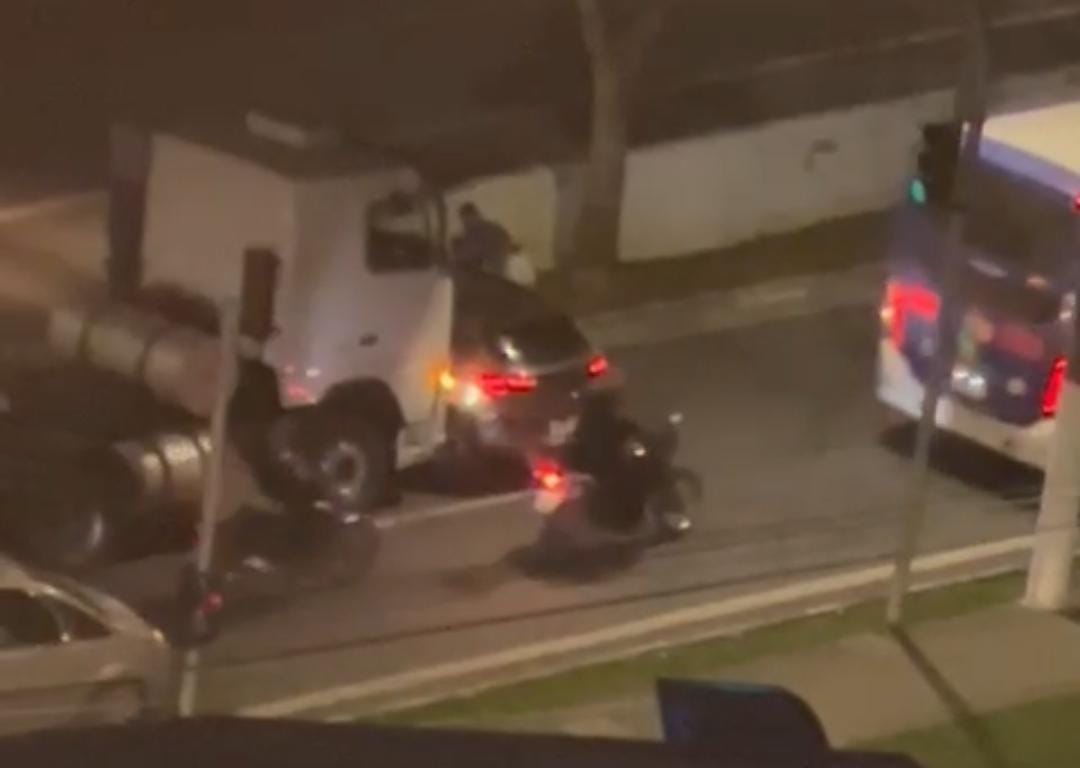 CAMINHÃO ARRASTA CARRO NA AVENIDA PERY RONCHETTI