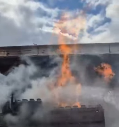 CAMINHÃO DE GÁS PEGA FOGO E ATINGE POSTO DE COMBUSTÍVEL DA PAULICEIA