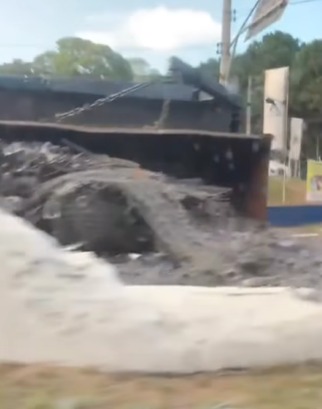 Agentes de trânsito estão no local para orientar os motoristas e garantir a segurança. O proprietário do veículo está providenciando a remoção da caçamba e a estabilização do caminhão com recursos próprios.