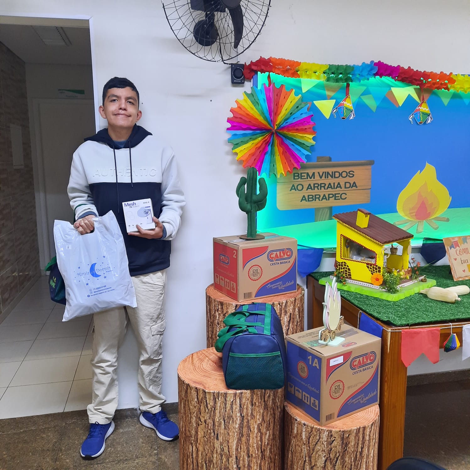 “Estou muito feliz! Pela primeira vez vou poder me aquecer com um pijama novinho. Agradeço à ABRAPEC e aos colaboradores por estarem proporcionando este momento tão especial, não só para mim, mas para todas as pessoas que estão sendo presenteadas com este kit de inverno. Com certeza vai nos aquecer muito. Gratidão!”