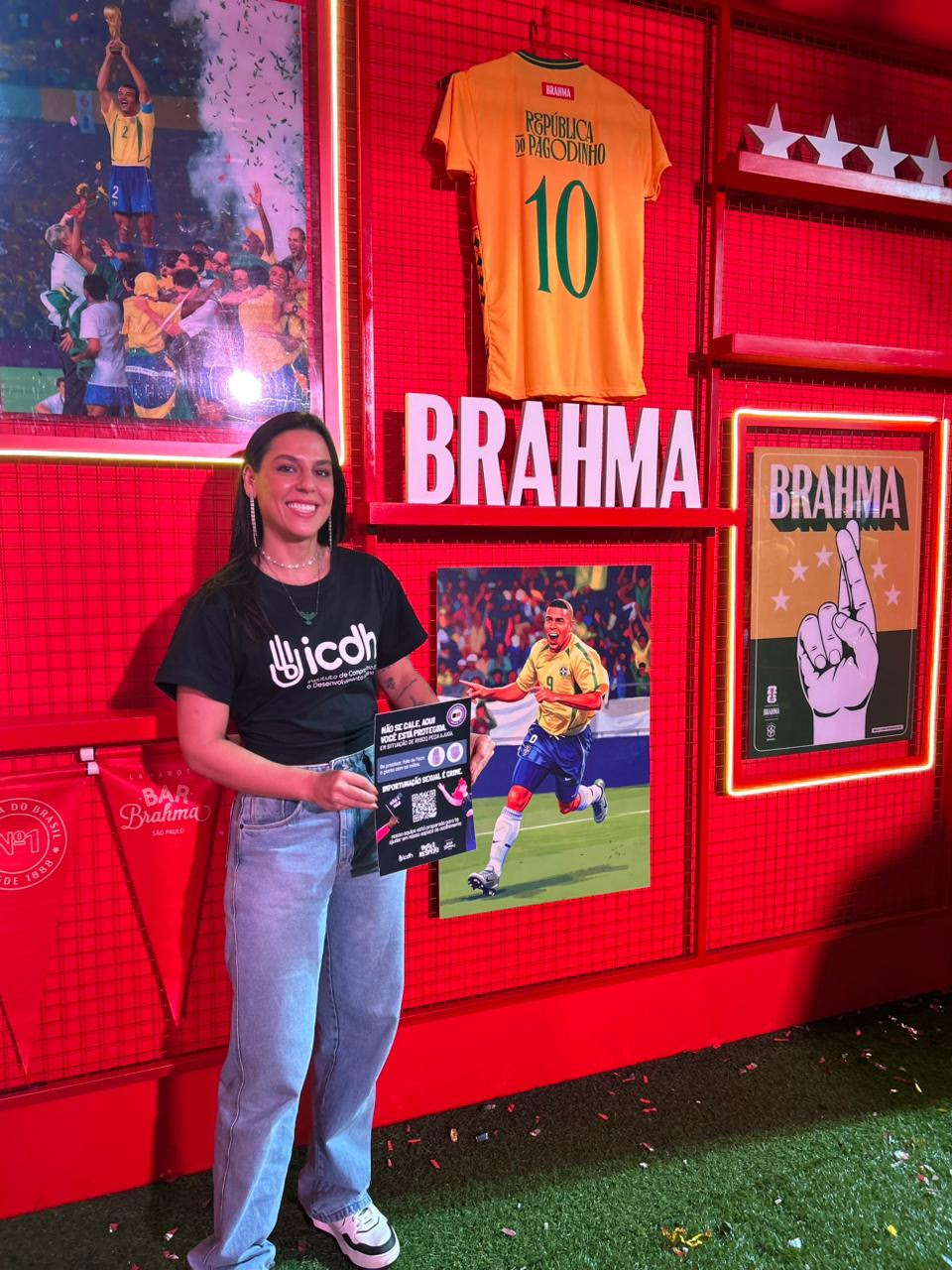 Durante os dias de folia no Anhembi, em São Paulo, o ICDH atuou em três frentes complementares no Camarote Bar Brahma. A responsabilidade socioambiental esteve presente no programa Universo Eco, orientando público e equipes para o descarte correto de resíduos e boas práticas de sustentabilidade desde a montagem até a desmontagem do espaço; no acolhimento e segurança a presença da campanha “Vista o Respeito” foi responsável pelas ações de prevenção e atendimento em situações de assédio, racismo, homofobia, violências e crises de ansiedade, com protocolos e escuta qualificada realizada por profissionais da saúde mental; e o engajamento social com a campanha “Abre Alas para o Bem”, que conectou a energia do Carnaval a um legado cultural permanente em Xerém.