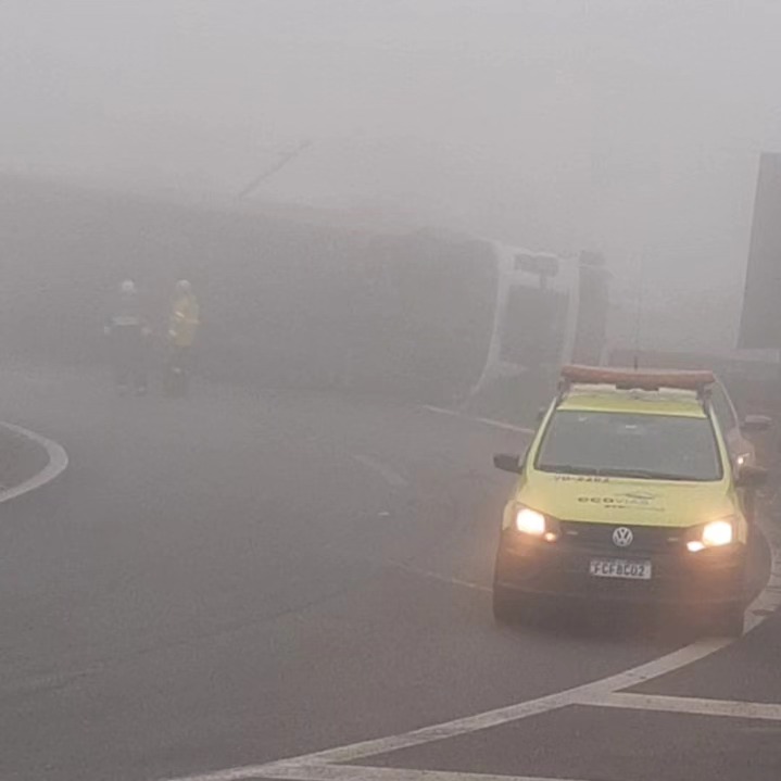 CARRETA CARREGADA DE PAPEL TOMBA NO KM 29 DA ANCHIETA SENTIDO LITORAL