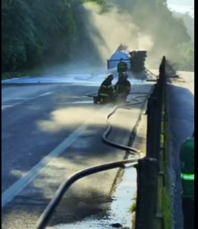 Equipes da concessionária seguem no local para controlar os riscos e liberar totalmente a rodovia.