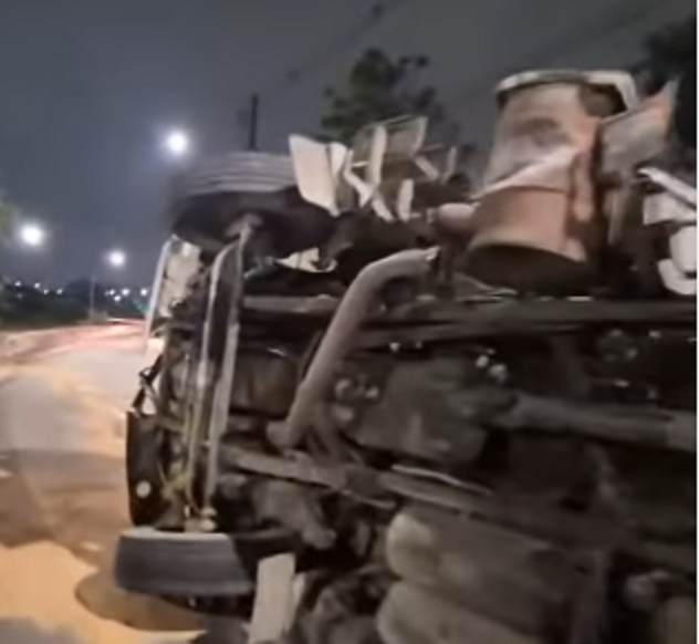 CARRETA COM PRODUTO QUÍMICO TOMBA NO ALVES DIAS; MORADORES SOCORREM MOTORISTA