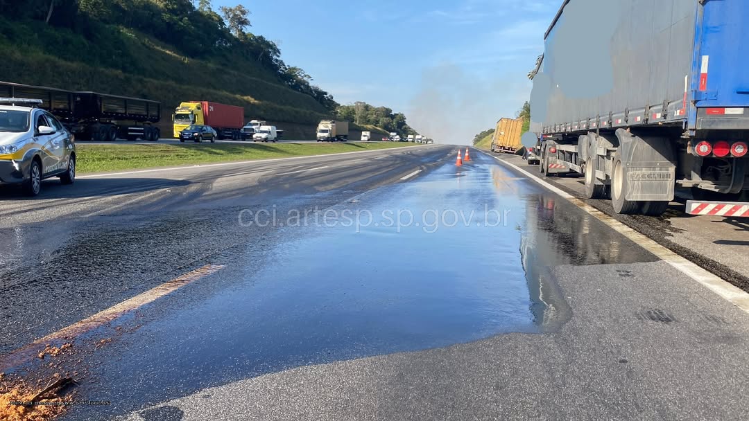 Equipes da concessionária foram até o local para fazer a limpeza da pista. Não há informações sobre feridos.