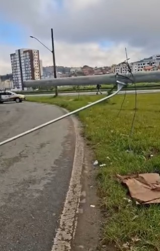 Com o impacto, o poste caiu sobre o veículo, e equipes do trânsito e GCM está no local.