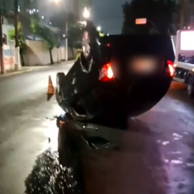 Na noite desta segunda-feira (16), um carro capotou na Avenida do Taboão, altura do número 3321, em São Bernardo do Campo. Segundo informações preliminares, o condutor do veículo afirmou que não prestou atenção na mureta da via, o que resultou na colisão e no capotamento.