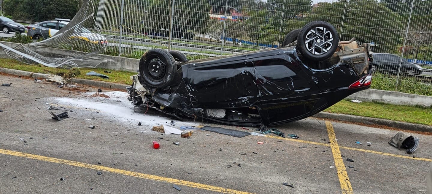CARRO CAPOTA NO KM 23 DA ANCHIETA E INVADE A VOLKSWAGEN