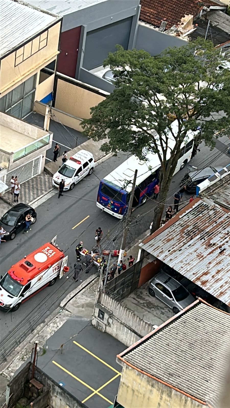 O motorista do coletivo tentou manobras defensivas, mas não conseguiu evitar a colisão com um veículo estacionado. Com o impacto, o ônibus acabou atropelando um casal que caminhava pela via.