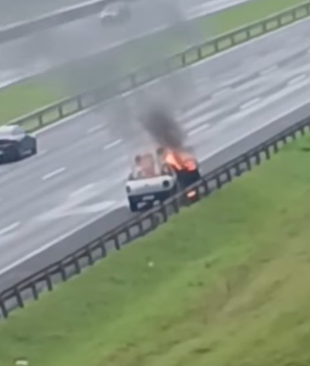 CARRO PEGA FOGO NA RODOVIA DOS IMIGRANTES E CAUSA BLOQUEIO DE FAIXA