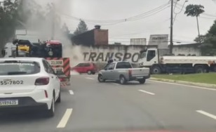 CARRO PEGA FOGO NA ROTATÓRIA DO BATISTINI E CAUSA TRÂNSITO NA REGIÃO