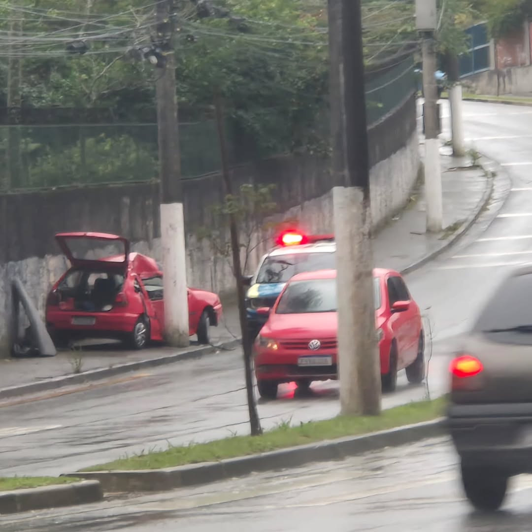 De acordo com informações preliminares, a pista estava escorregadia devido a uma fina garoa e, possivelmente, a presença de óleo na via. Esses fatores podem ter contribuído para que o motorista perdesse o controle do veículo, que acabou rodando e parando entre o poste e um muro.