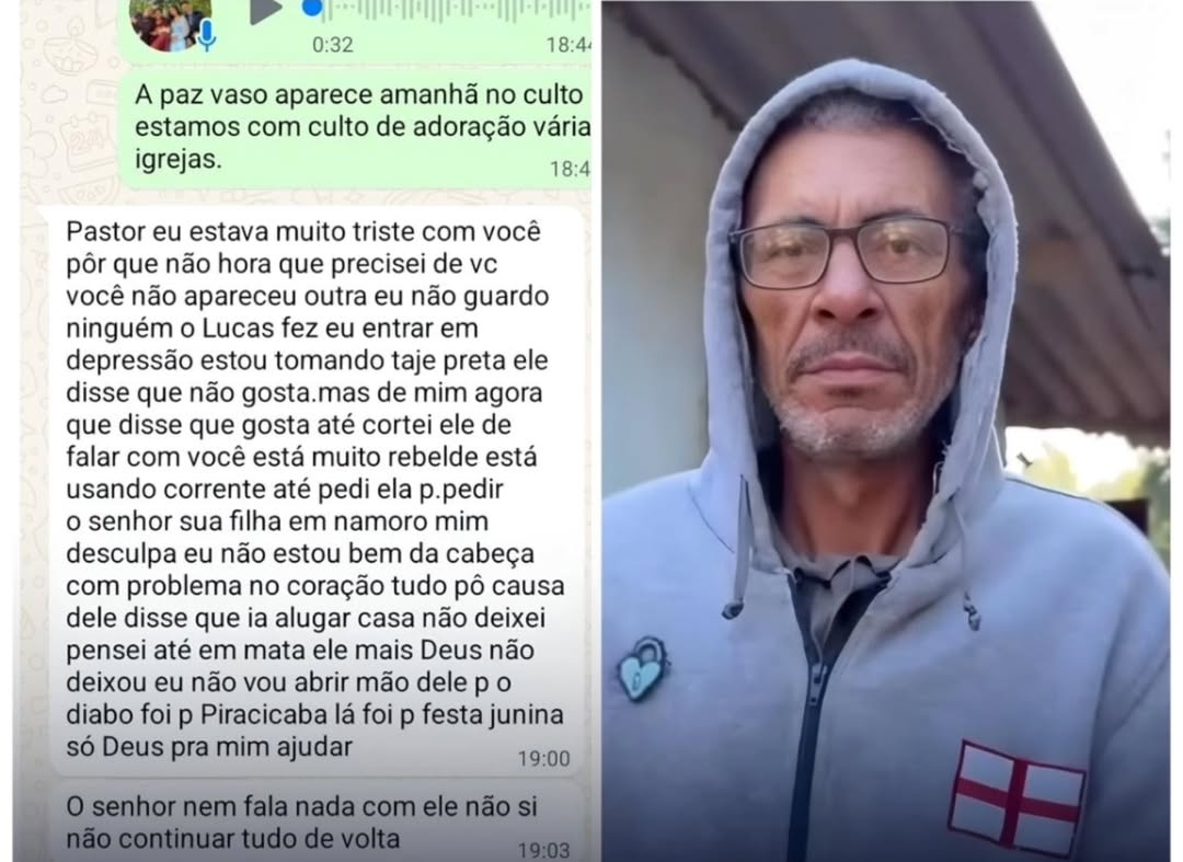 Um print de uma mensagem enviada por Ademilson Ferreira dos Santos, padrasto de Lucas da Silva Santos, de 19 anos, a um pastor chama atenção pelo teor. No conteúdo, ele afirma: “Pensei até em matar ele, mas Deus não deixou.” O jovem segue internado em estado grave na UTI do Hospital de Urgência de São Bernardo, após consumir bolinhos de mandioca envenenados.