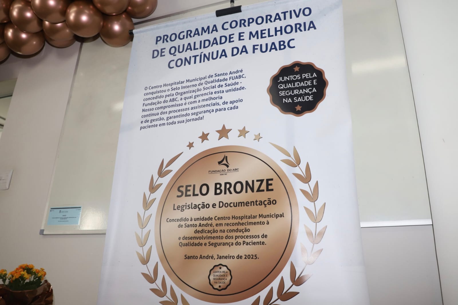 Santo André, 12 de fevereiro de 2025 – O Centro Hospitalar Municipal de Santo André (CHMSA) recebeu nesta terça-feira (12) o selo interno nível Bronze do Programa Corporativo de Qualidade e Melhoria Contínua da Fundação do ABC (FUABC). Gerenciado pela FUABC em parceria com a Prefeitura, o equipamento de saúde cumpriu todos os requisitos em um rigoroso processo de avaliação iniciado em abril de 2024.