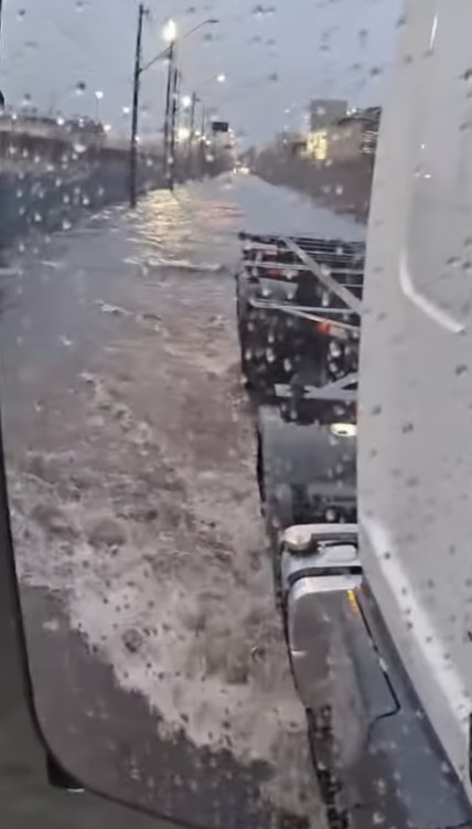 A forte chuva que caiu na madrugada desta quarta-feira (6) causou alagamentos em diversos pontos de Santos, no litoral paulista. Caminhoneiros registraram vídeos da situação crítica na região da Alemoa, na Rua Dr. Albert Schweitzer.