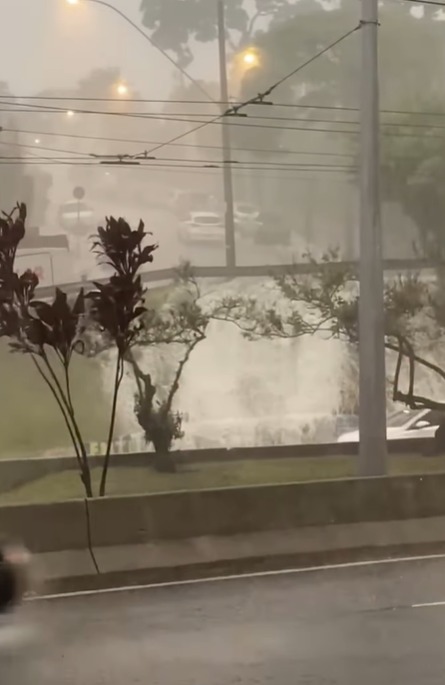 A Defesa Civil já havia emitido alerta para risco de chuvas acompanhadas de rajadas de vento ao longo do dia. O volume de água prejudicou o tráfego em pontos próximos à avenida.