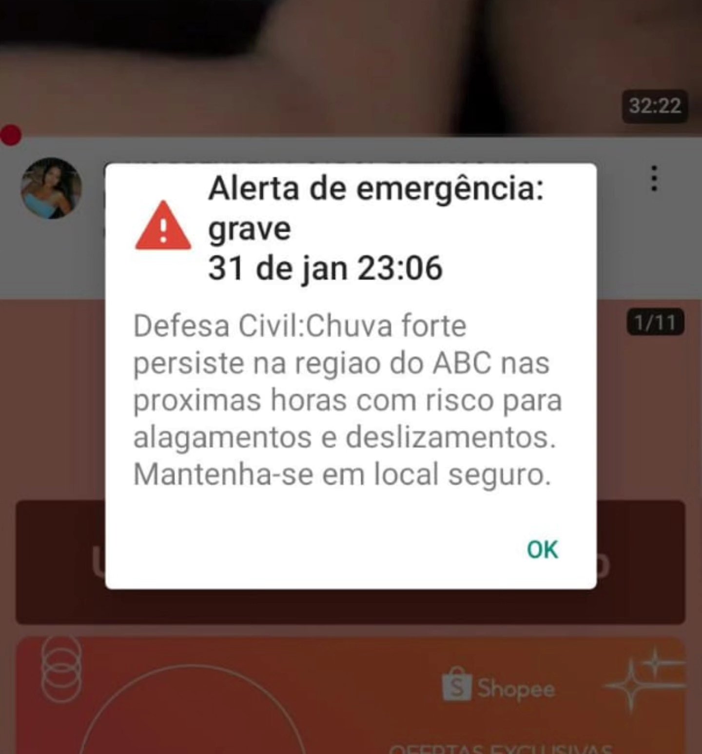 A forte chuva que começou na noite de sexta-feira (31) se estendeu pela madrugada deste sábado (1º), mantendo cidades do ABC em estado de atenção. Moradores de São Bernardo do Campo, Santo André, São Caetano do Sul, Diadema e Mauá receberam alertas de emergência da Defesa Civil, orientando sobre os riscos de transtornos causados pelo volume de água.