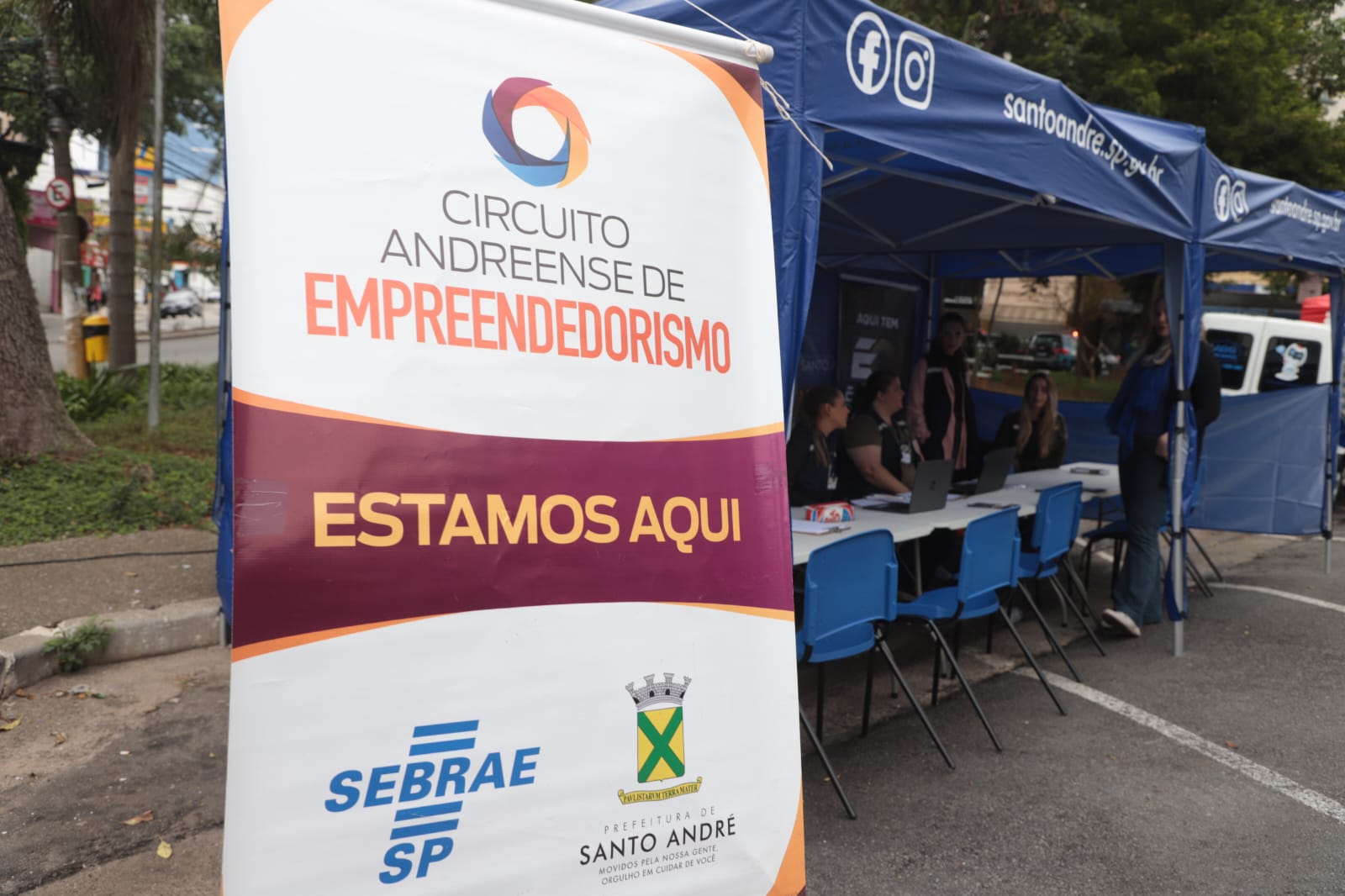 A ação conta com estandes da Sala do Empreendedor, para informações sobre a regularização de seus negócios, do Banco do Povo, para tirar dúvidas sobre acesso a crédito, da Escola de Ouro Andreense, com informações sobre cursos de capacitação, e do CPETR para o cadastramento de currículos, além dos estandes da Acisa e AGG Fiscal, e o veículo do Sebrae Itinerante.