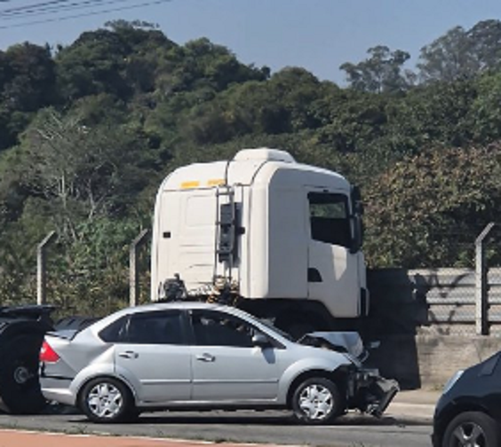Uma colisão entre um caminhão e um carro de passeio mobilizou equipes de resgate sesta terça-feira (22/7), na Estrada dos Alvarenga, altura do número 5.700, sentido Centro, em São Bernardo do Campo.