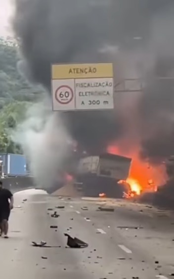 COLISÃO ENTRE CARRETAS COM TOMBAMENTO E INCÊNDIO DEIXA DUAS VÍTIMAS FATAIS NA ANCHIETA