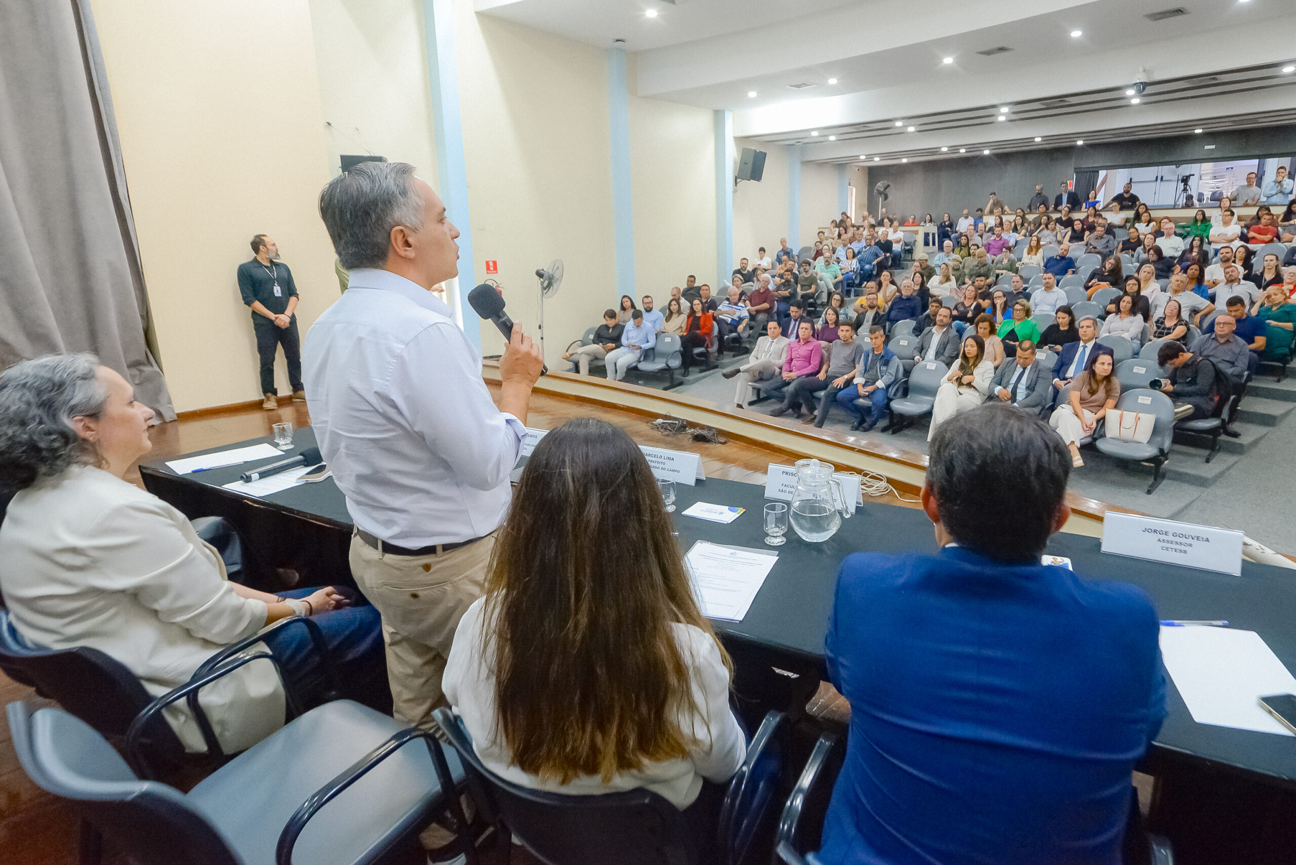 PROTAGONISMO – Entre os especialistas presentes no evento, o gerente da Escola Superior da Cetesb, Jorge Gouveia, participou da mesa de debate ao lado das autoridades municipais e destacou o protagonismo dos municípios na gestão ambiental, colocando a instituição à disposição da nova escola.