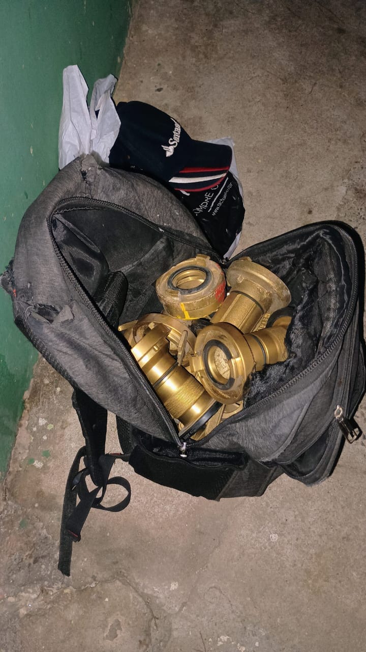 O supervisor de segurança foi alertado sobre a movimentação suspeita e conseguiu interceptar o indivíduo, que portava uma mochila contendo nove esguichos de jato regulável, oito engates adaptadores e nove chaves Storz, cada item avaliado em R$ 2.250,00, totalizando um valor considerável.