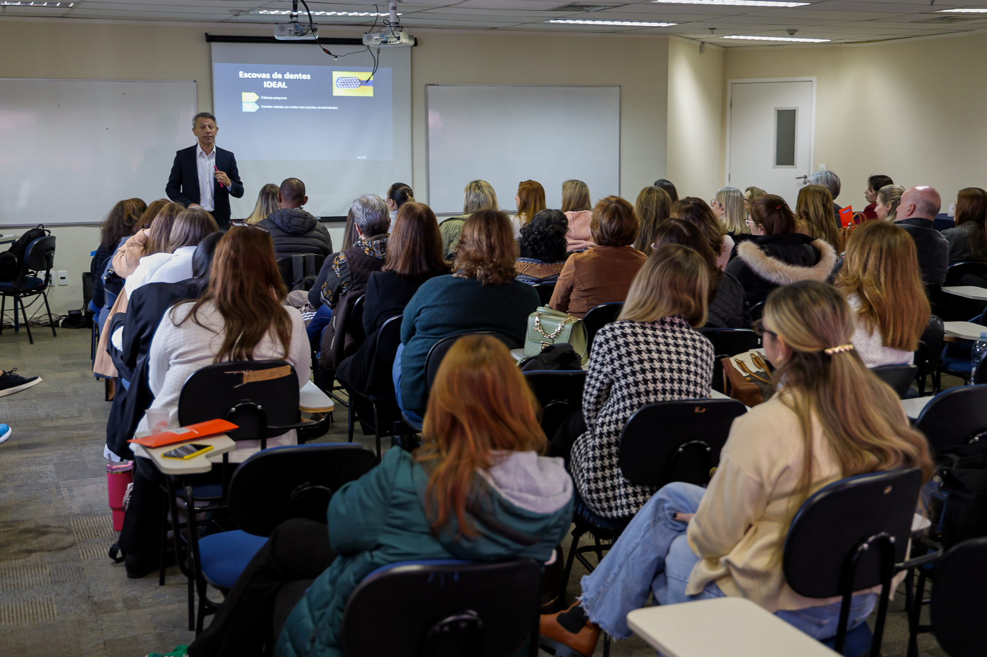 O curso foi ministrado pelo professor de Periodontia da Unisa, Caio Roman, que abordou como manter dentes e gengivas saudáveis por toda a vida, inclusive com técnicas a serem transmitidas pelos profissionais aos pacientes. Gengivite experimentalmente, situações que influenciam a higiene bucal e como controlar a formação da placa bacteriana bacteriana entre os temas.
