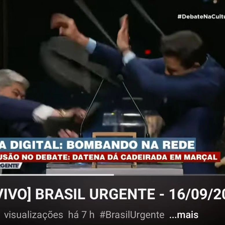 No programa Brasil Urgente desta segunda-feira (16), Joel Datena exibiu as imagens de seu pai, José Luiz Datena, arremessando uma cadeira em Pablo Marçal durante um debate de candidatos à Prefeitura de São Paulo, transmitido pela TV Cultura. A cena viralizou rapidamente nas redes sociais, gerando diversos comentários, com muitos perguntando se “o Datena ia passar no programa do Datena”.